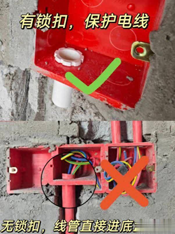 1、改水电的时候,你只要不说,师傅肯定不会在线盒和线管之间装锁母,东西不值钱,但是它的作用很大,没有它,后期穿线时,电线容易受损伤或穿不动线,后期填水泥砂浆,如果没有锁扣,水泥砂浆会进到线盒里,造成管路被堵住,每一个都要装,如果没有,那就是不合格的。
