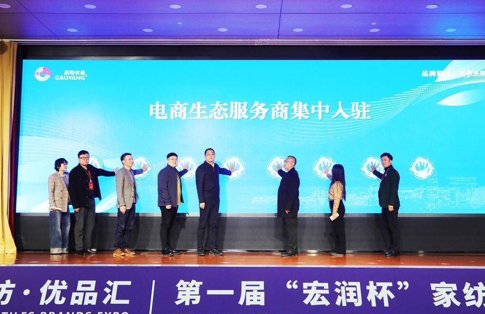 高阳家纺优品汇暨第一届“宏润杯”家纺创意设计大赛启动仪式上,电商生态服务平台集中入驻揭牌仪式现场。韩翠嫣摄