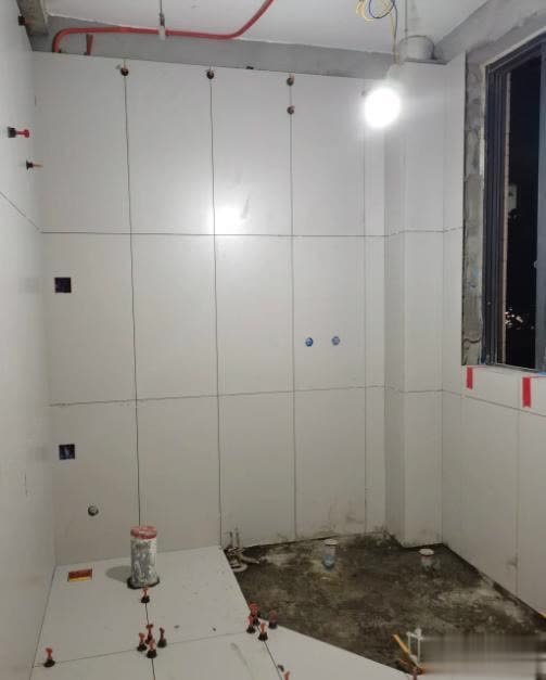 6、他们告诉你,小卫生间就适合大砖上墙,装出来的效果缝隙少、更高级,等你贴的时候你就后悔了,前期安装施工和采购成本高,并且你后期真的很容易脏,很容易粘上各种印子,且必须马上立即清理,隔一天后污渍就比较难擦掉。