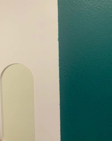 7、告诉你拼色墙面好看,甚至还给你搞各种拼色方案,我就告诉你,不出来两年你绝对后悔,由于乳胶漆是液体,会渗透到美纹纸粘贴边,往往都会出现毛边,关键这种深颜色的色漆磕碰后根本没办法修补。补漆就会有色差,没有别的办法,除非油漆余量足,整面墙都刷一遍。