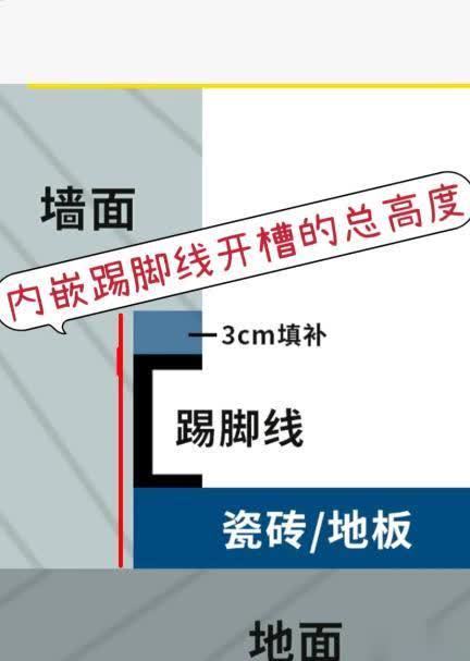 你就装个铝合金踢脚线,不用提前墙面开槽,也不用装护墙板,材质薄,而且高度也只有4cm,看起来不厚重,也不会落灰。但对施工墙面要求比较高,需要油工做局部找平。
