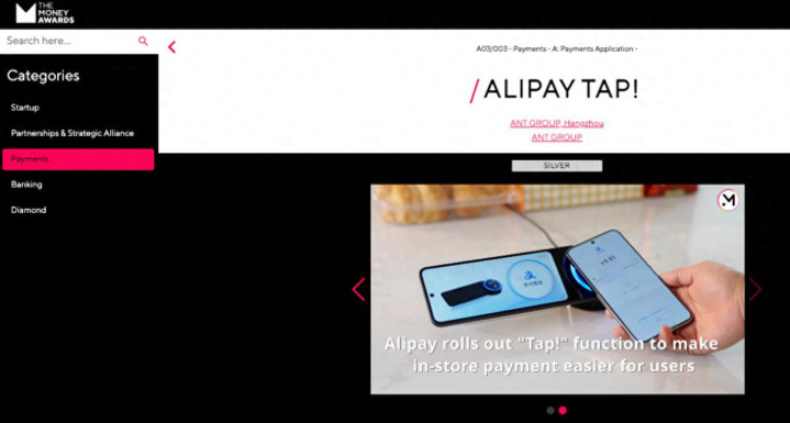 支付宝凭“碰一下”在万事达、摩根大通等一众知名企业的支付解决方案中脱颖而出拿下大奖,也成为获奖者中唯一的中国企业。